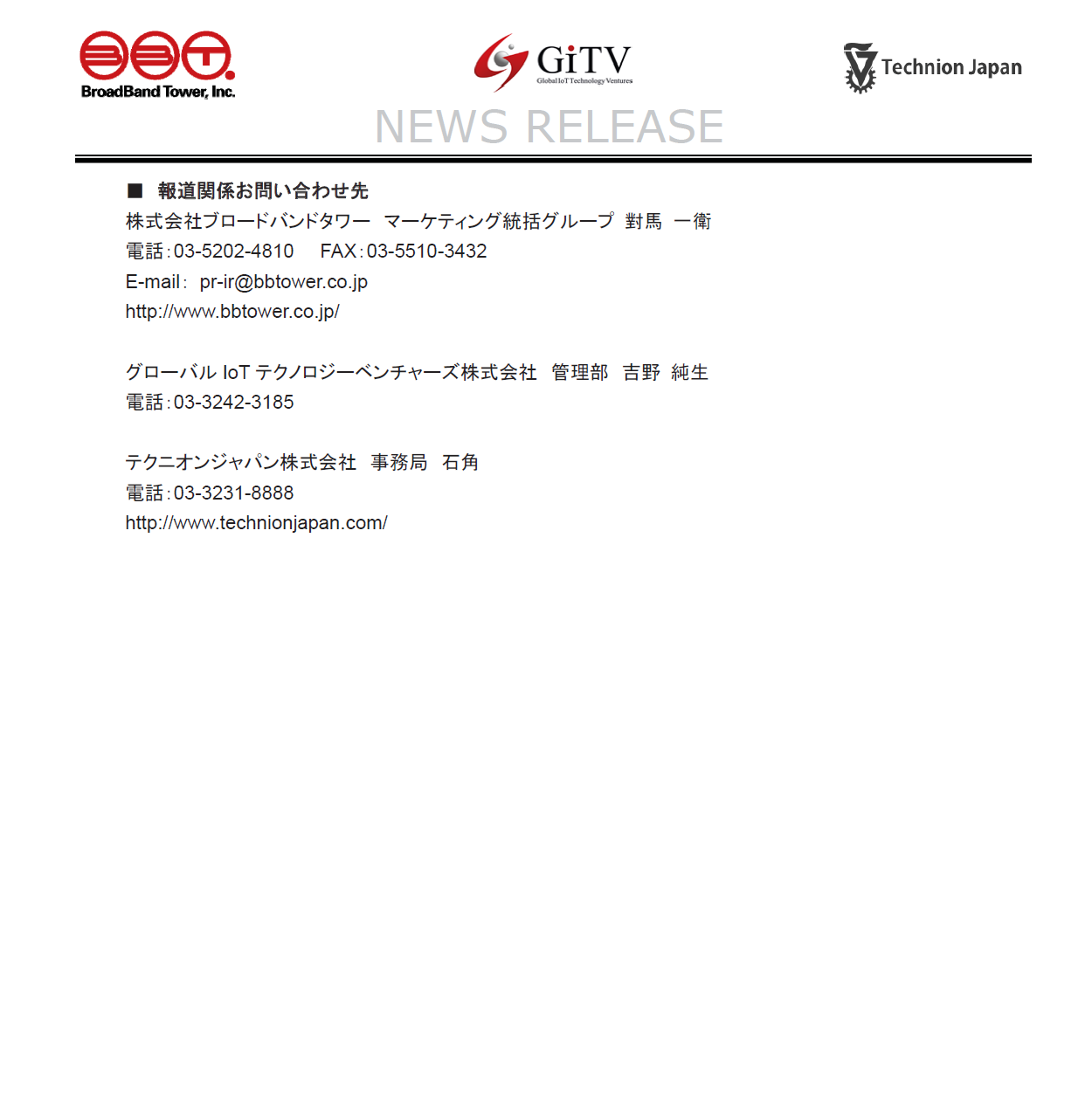 Technion Japanは藤原洋様代表の株式会社ブロードバンドタワー及び株式会社インターネット総合研究所と業務提携し、下記の通りの記者発表を行いました。
